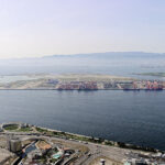 2025年大阪・関西万博の会場である大阪市此花区の人工島・夢洲。その入り口付近で...